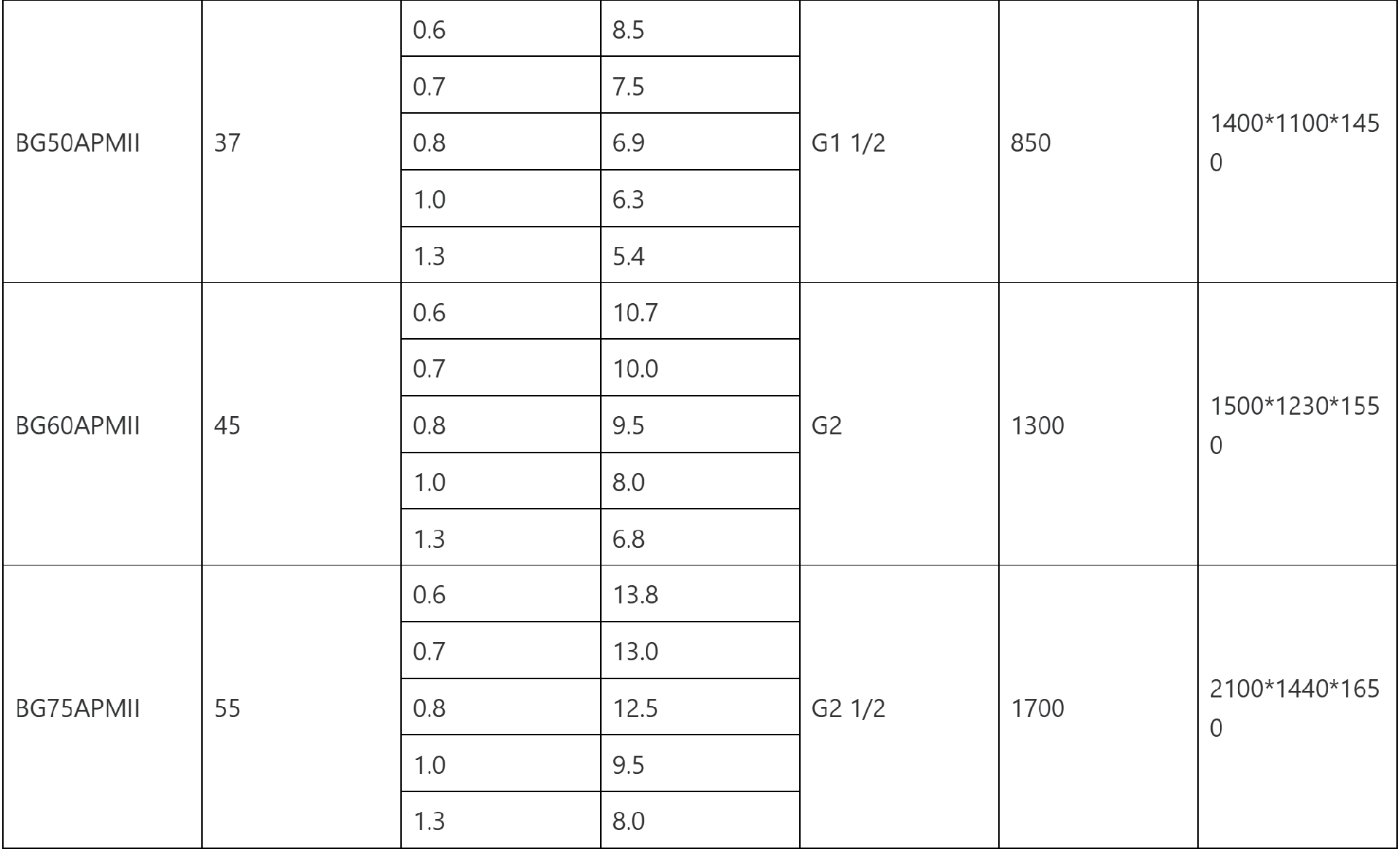 产品描述:采用高效,经久耐用的两级主机,可以实现多达15%的节能效果,转子经过二十道工序的精加工,保证转子线型的精准度,可靠性和有效性。双级压缩永磁变频螺杆空压机技术参数/Technical parameter型号Model功率Power(kw)排···
